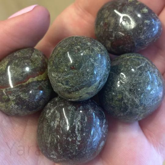 Drakenbloedjaspis, ook bekend als drakenbloedsteen, is een opvallende variëteit van jaspis die bekend staat om zijn levendige groene kleur met rode of oranje patronen die lijken op druppels of strepen. De naam "drakenbloed" komt van de rode patronen op de steen, die volgens sommigen lijken op het bloed van een mythische draak.