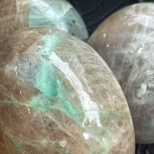Groene Maansteen is een zachtgroene, delicate en kwetsbare steen. De naam 'maansteen' verwijst naar de karakteristieke glans die ontstaat door de breking van lichtstralen in de microstructuur van veldspaat, wat doet denken aan maanlicht. Deze steen wordt gevonden in onder andere Australië, de Alpen, Mexico, Madagaskar, Noorwegen, India en de Verenigde Staten.