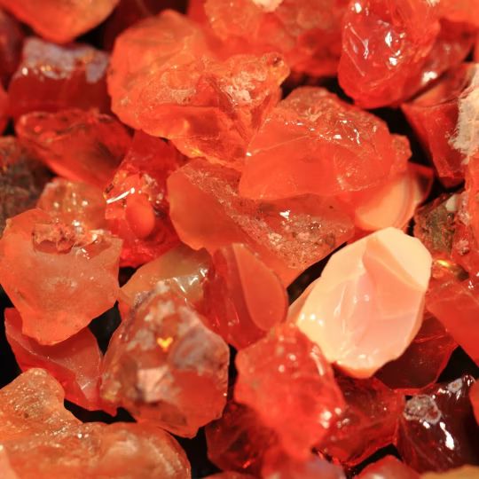 Vuuropaal is een opvallende variëteit van opaal die bekend staat om zijn levendige oranje, gele of rode kleuren, die doen denken aan de vlammen van een vuur.